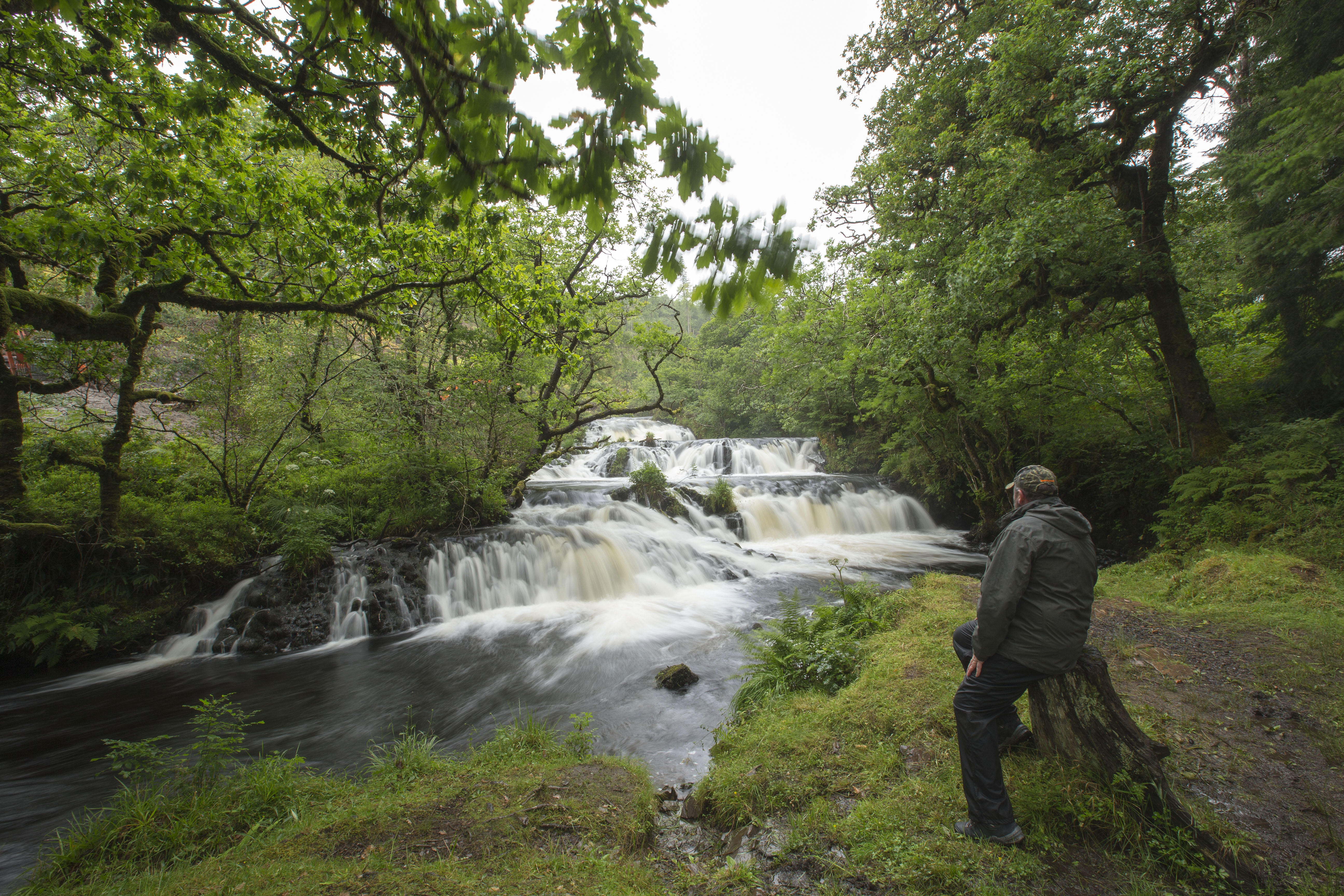 Rushing water. A glint of silver as salmon leap and swim upstream. Sunlight filtering through tall t…
