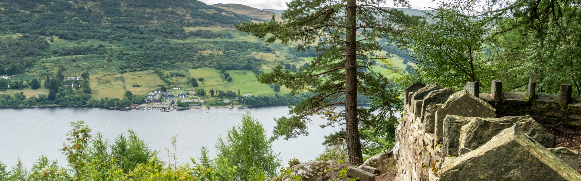 Oakwood trails that pass a lochside pebbly beach