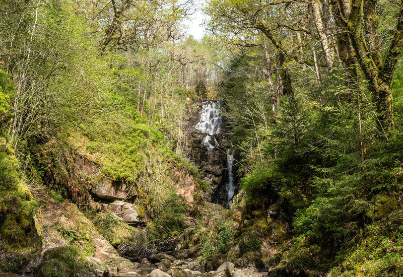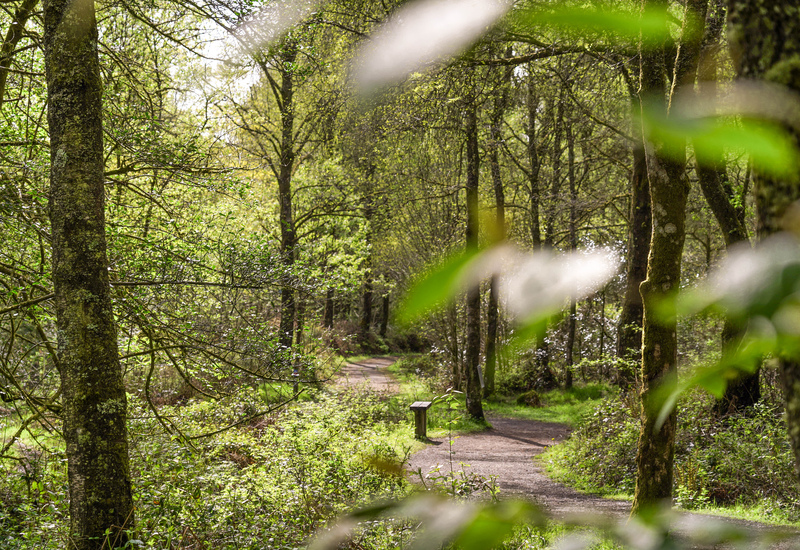Oakwood trails that pass a lochside pebbly beach